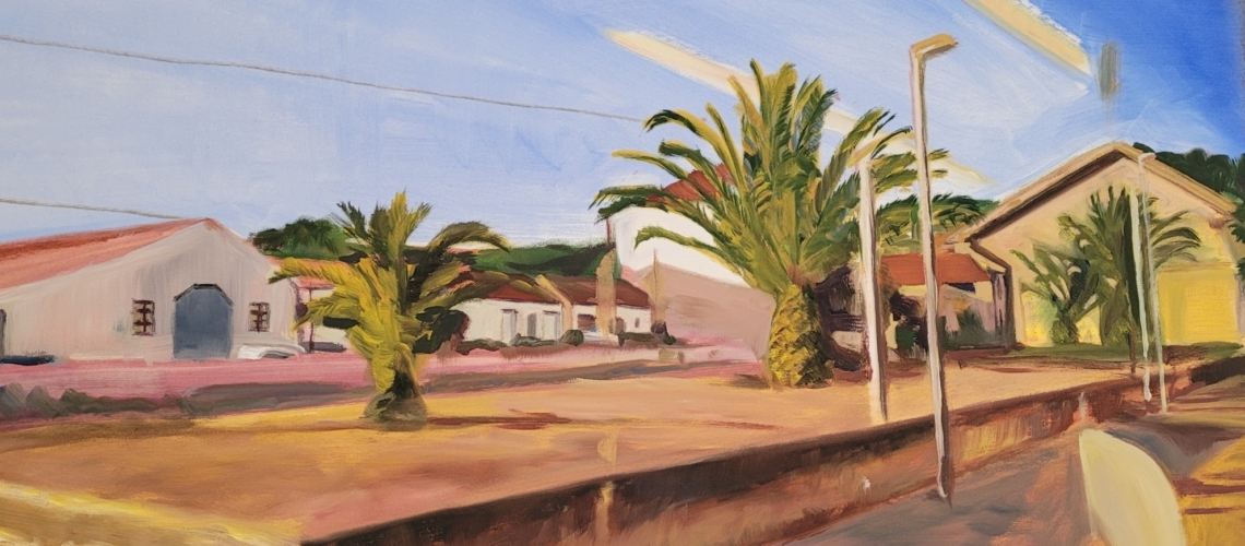 Auf seinen Ölbildern ist eine Reise auf der westlichsten Eisenbahnlinie Portugals – die Linhea d’Oeste – zwischen Caldas da Rainha und Figueira da Foz festgehalten.