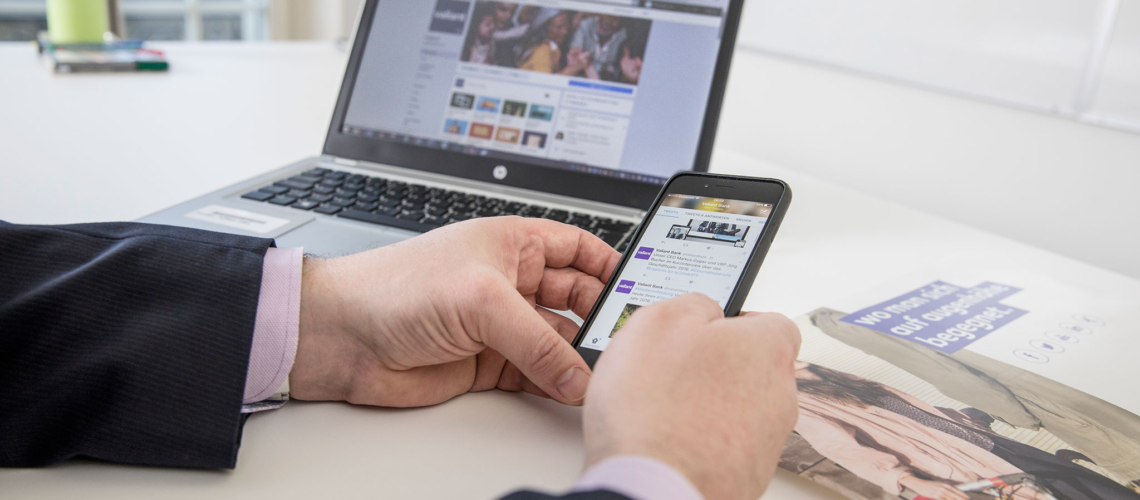 An keinem anderen Ort werden so viele Erfahrungen, Meinungen, Eindrücke und Informationen ausgetauscht, wie in den sozialen Medien. Ob uns als Marke positionieren, mit unseren Kundinnen und Kunden interagieren oder neue Mitarbeitende rekrutieren – als einfache und zugängliche Bank möchten wir uns online austauschen und präsentieren.